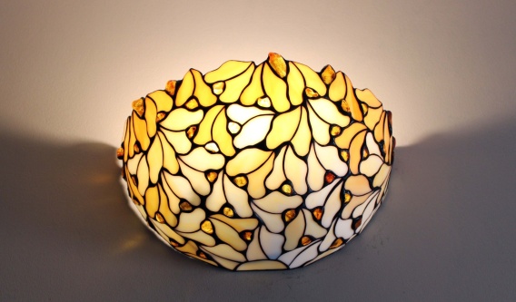 Witrażowy kinkiet listki z bursztynem